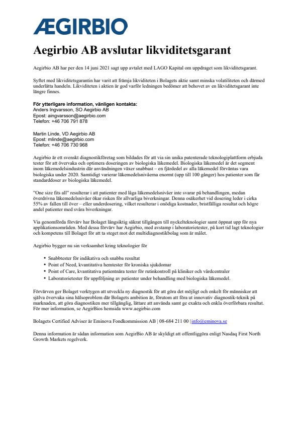 Denna information är sådan information som AegirBio AB är skyldigt att offentliggöra enligt Nasdaq First North Growth Markets regelverk.