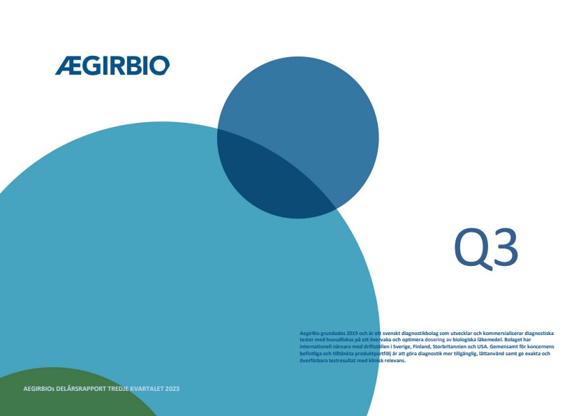 • AegirBio AB har erhållit ett fas 1-pris från National Institutes of Health (NIH) för ett tillgänglighetsprojekt (RADx). Utmärkelsen ger AegirBio 1,2 MUSD från NIH, varav ca 240 KUSD blev utbetalda i oktober 2023.